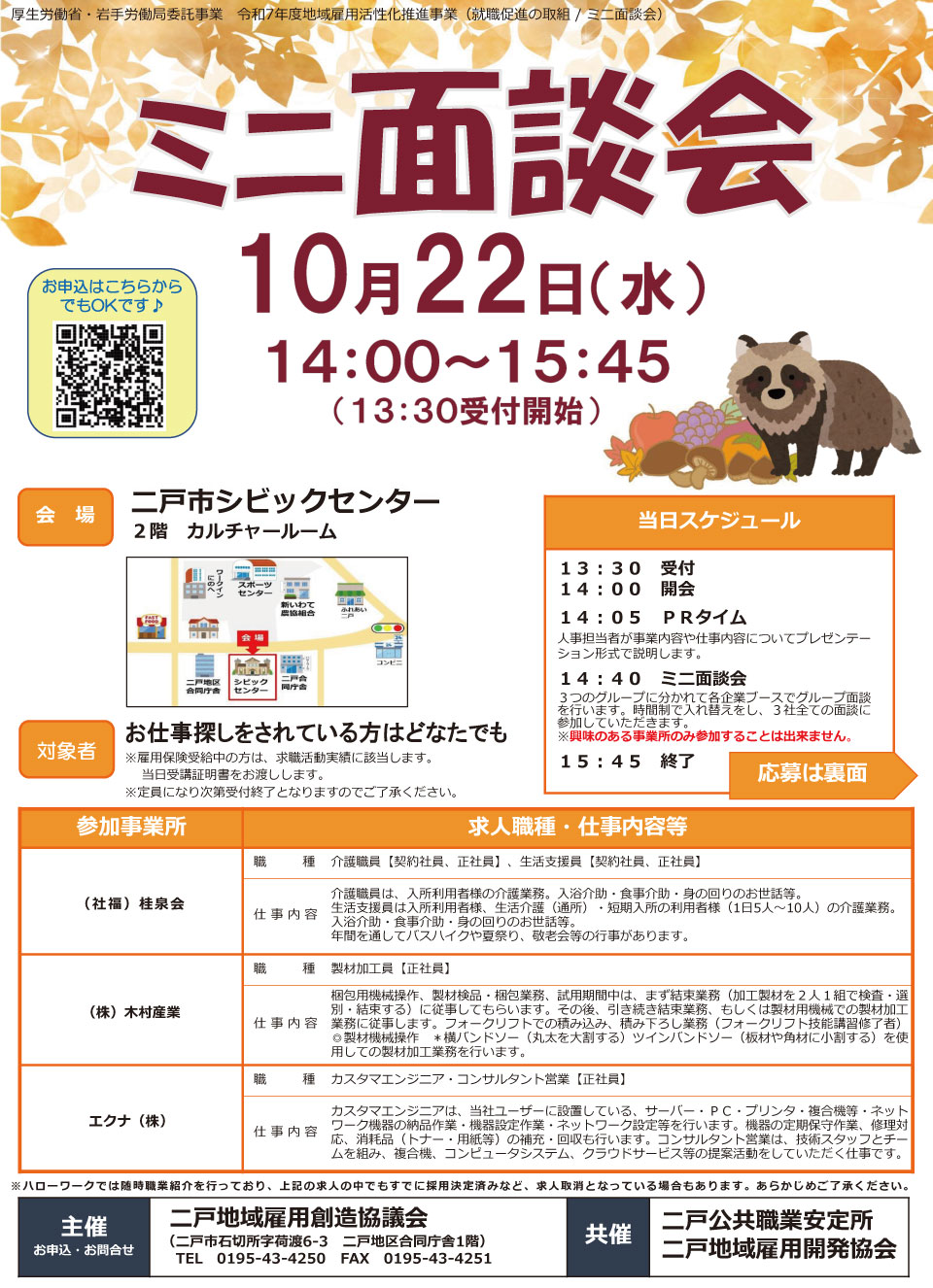 | 申込方法 | ご希望の企業へエントリーしたい方はお問い合わせフォーム、またはチラシ裏面の申し込み欄に記入して提出いただくことでお申込み頂けます。 |