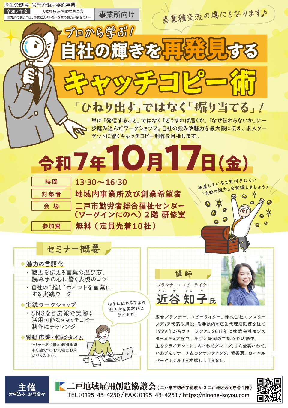 自社の強みや魅力を最大限に伝えられるキャッチコピーを作れるようになるセミナーです。