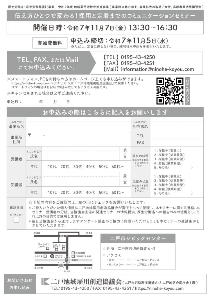 | 会場 | 二戸市シビックセンター 2階 カルチャールーム |