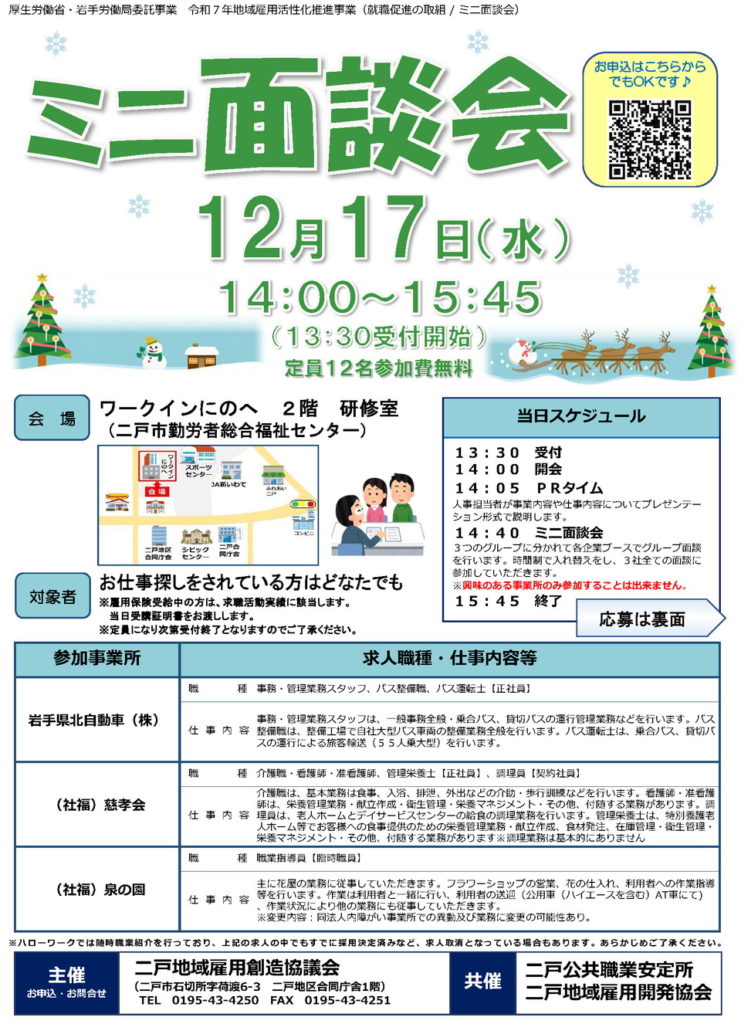 | 参加企業 | ・岩手県北自動車(株) ・(社福)慈孝会 ・(社福)泉の園 |